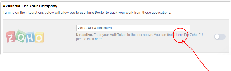 7. Copy and paste the code on the box in Time Doctor for the code. Then switch it back on.