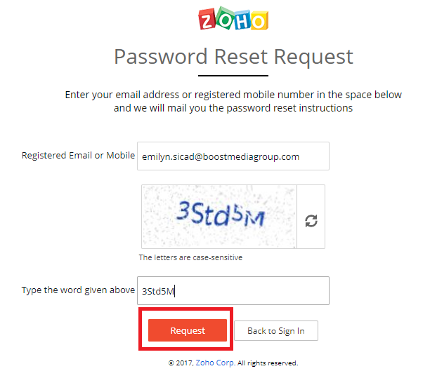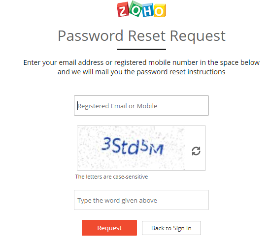 How can I reset my Zoho CRM account password? Users with any role can reset their password individually by clicking on the Forgot Password link in the Zoho CRM log in page. Follow the steps given below: 1. Click the Forgot Password link in the Zoho ...